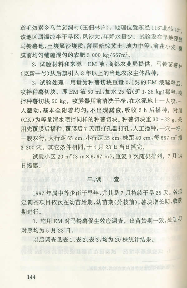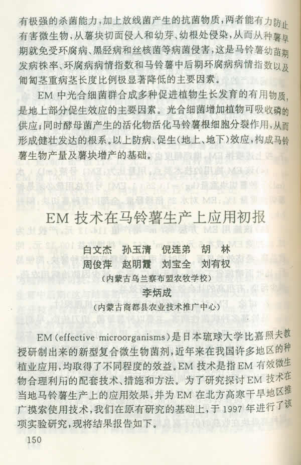 馬鈴薯種薯噴拌em促生防病增效效應(yīng)實(shí)驗(yàn)研究